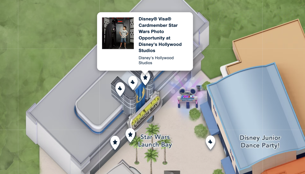 Over at Disney’s Hollywood Studios, there’s ANOTHER exclusive character experience. For this one, you’ll want to head to Star Wars Launch Bay. You can find a variety of Star Wars meet-and-greets here, but there’s one that’s JUST for Disney Visa Cardmembers!