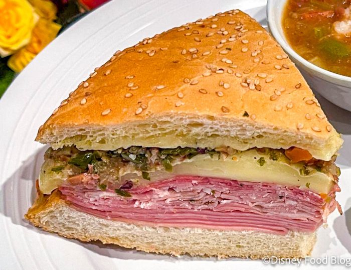 The chefs talked about how important the bread is in this sandwich. It’s coated with sesame seeds and is very light, which helps the ingredients inside stand out. The olive relish (which has at least 12 ingredients) adds another level of flavor.