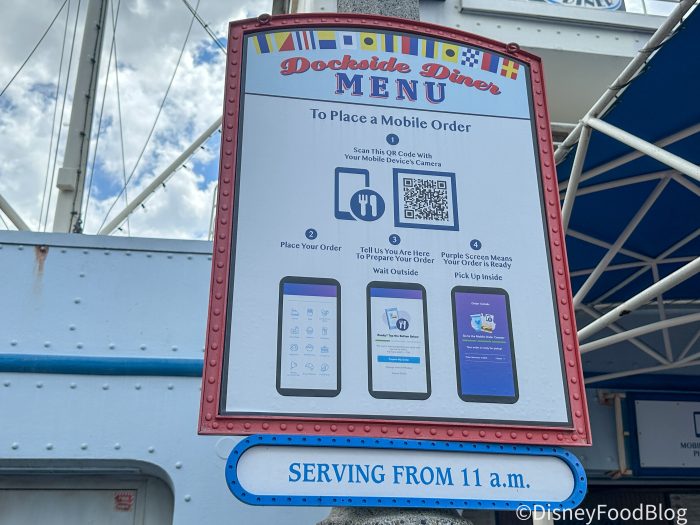 We opted for a meal outside at Dockside Diner Restaurant. You may have formerly known this location as Min and Bill’s Dockside Diner, but they’ve since dropped the “Min and Bill’s” part of the name. This restaurant can be found near For The First Time In Forever: A Frozen Singalong, the back side of Keystone Clothiers, and adjacent to Hollywood and Vine Restaurant. This is a fast food location, so you’ll be ordering at the counter or through mobile order and grabbing your own food, then off to find seating.