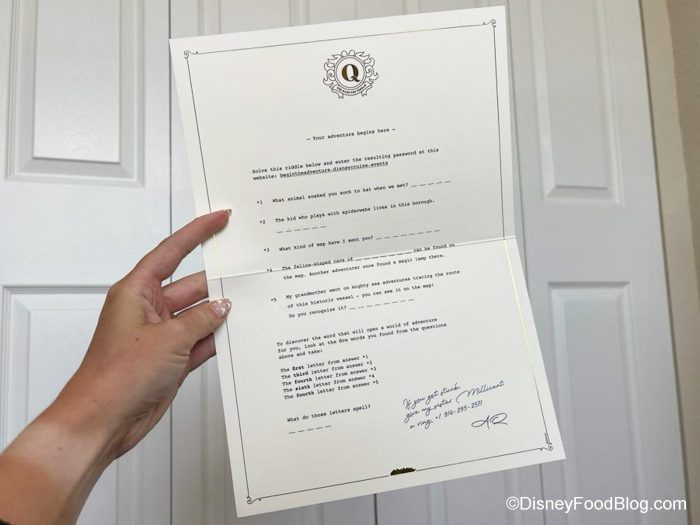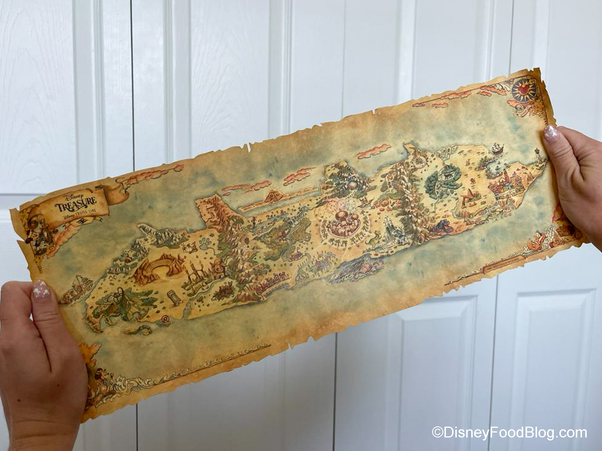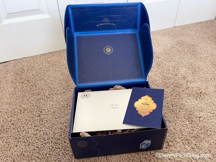 Disclosure: In nearly all circumstances, Disney Food Blog writers and photographers pay full price for their own travel, hotel, food, beverage, and event tickets. We do this because it’s important to us as journalists to ensure not only that we give you unbiased opinions, but also that you can trust us to do so since we’re paying our own way. On rare occasions, when we are invited by a company to attend a preview as media, and when we choose to accept that invitation, we will always make you, our readers, aware of that situation. Today, we received a package from Disney Cruise Line with details on the new Disney Treasure cruise ship. Note that when we attend events or receive mail as media we are 1) Not required to review that event on any of our channels, and 2) Not required to review that event favorably. You can always count on DFB to give you a 100% unbiased and honest review of any event that we attend, food that we eat, or beverage that we drink. You can see more in our Disclosure Policy. Thank you for reading. — AJ
