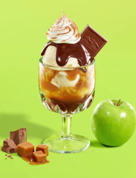 That flavor is APPLE, and Ghirardelli in both Disney Springs and Disney California Adventure are introducing a brand-new sundae featuring it! It’s the Caramel Apple Hot Fudge Sundae, and it’s made with handmade milk hot fudge, apple filling, a sprinkle of cinnamon, and a milk chocolate caramel apple square.