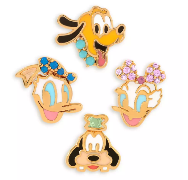 You get lots of glimmer with these beautiful earrings. Donald and Daisy are opalescent icon studs while they’re accented with pink and blue cubic zirconia jewels. We can’t help but be in love with these!
