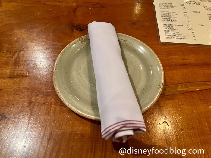 I arrived a bit early and received a warm greeting. I was told I would receive a text when my table was available, and it was ready right on time. The table was set simply with a cloth napkin, small plate and flatware.