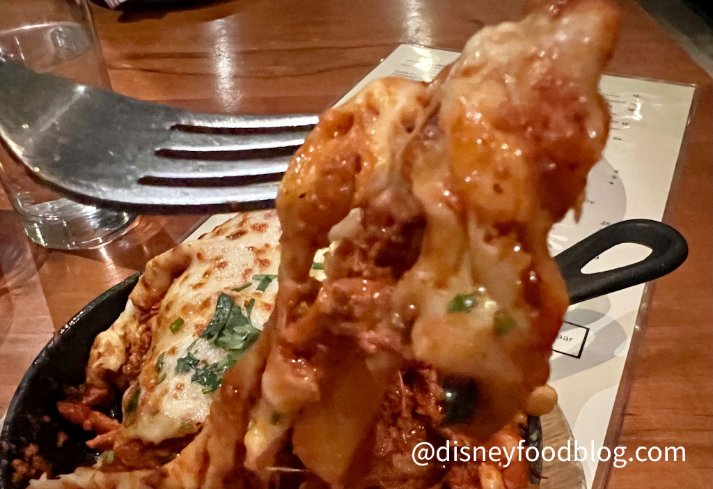 The fries here stayed impossibly crispy under the heavy load of toppings — I don’t know what kind of sorcery was involved in that, but I’m 100% in favor. You know how when you order a stacked appetizer — like a poutine, nachos, or loaded fries — the toppings don’t last to the bottom of the dish and you end up with plain fries or chips? That’s not an issue with this dish — at all. You will have plenty of toppings in every bite.