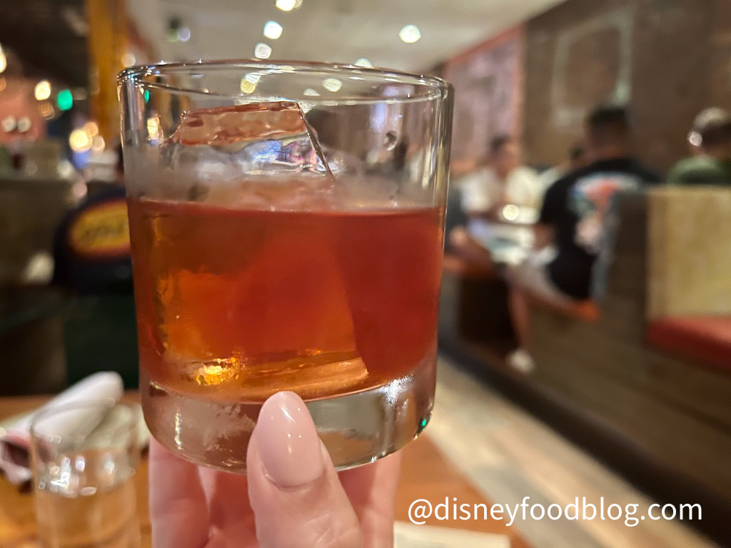 I opted to start the evening with an Ol’ Chauhan — the restaurant’s version of an Old Fashioned. The $16 drink was made with rye whiskey (an interesting choice over bourbon in the south), amaro, vanilla, and orange bitters. It was garnished with an orange peel and served over a large ice cube.