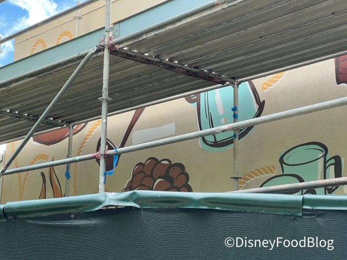 Over in Toy Story Land by Toy Story Mania, one wall that’s been under construction for a while is being covered in a mural.