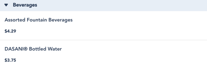 While we didn’t order a drink, you’ll find your typical Coke fountain drinks here, as well as some Dasani water and Corona beer!