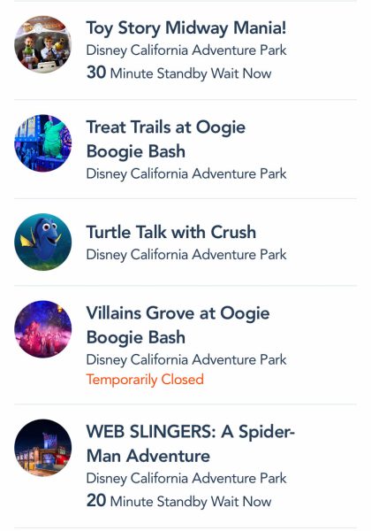 Remember, these are pre-party wait times while regular guests and Oogie Boogie Bash guests are both currently in the park.