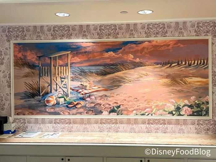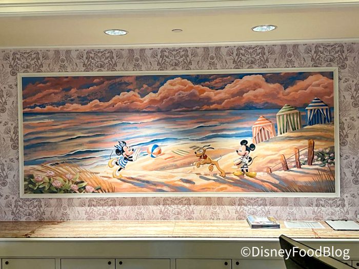 We’re also spotting some new artwork behind the desks that really bring the spirit of the Beach Club. In one we see Mickey, Minnie, and Pluto enjoying a day at the beach.
