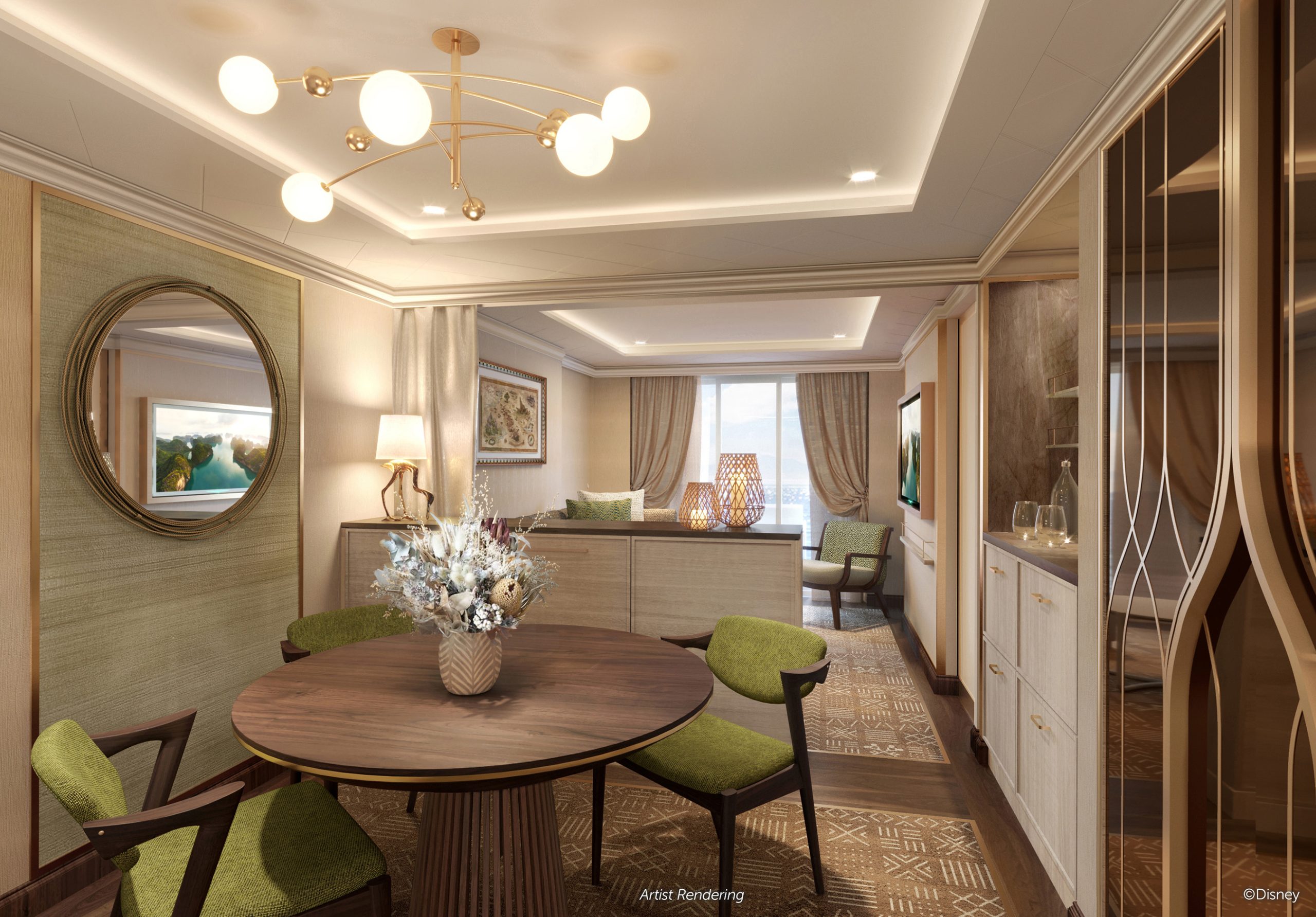 Guests sailing in the concierge suites aboard the Disney Treasure can look forward to relaxing in elegant suites inspired “by the majestic grasslands Simba calls home in Walt Disney Animation Studios’ The Lion King.”