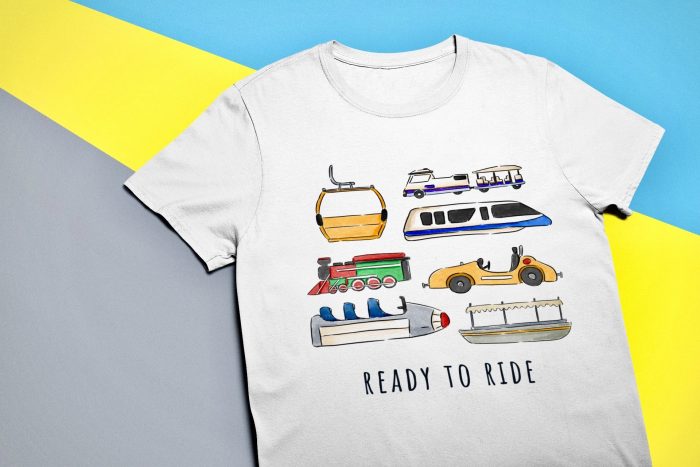 If you’ve got a full day of Disney activities lined up, odds are you’ll end up on one of these iconic Disney vehicles at some point! Whether you’re a Skyliner-lover or the Jungle Cruise’s biggest fan, we’ve got you covered with this popular Ready To Ride t-shirt!