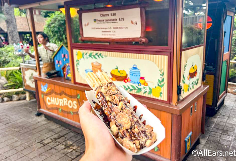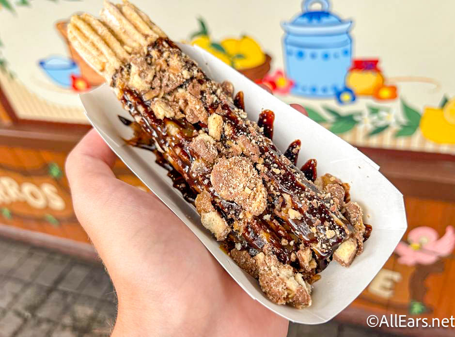 If you head over to the Churros & Lemonade cart in Critter Country, you’ll find the Trick or Treat Sweets Churro for $7.25. It’s rolled in shortbread sugar, drizzled with caramel and chocolate, and topped with TWIX.