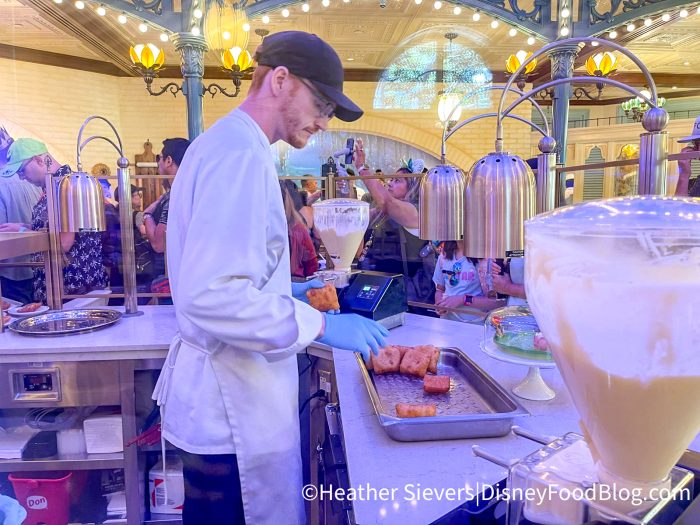 …beignet making station! These are modeled after a lemon icebox pie, with a tart filling and lemon glaze. You can watch the “action station” inside the restaurant where the chefs fill the beignets.