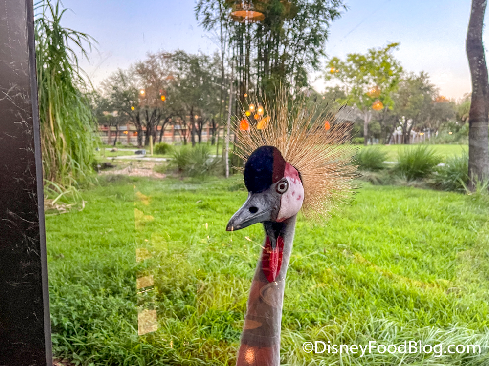 We checked into the restaurant on the My Disney Experience app and enjoyed the views while we waited for our table to be called. There are all kinds of animals out here to spot, including gazelles, zebras, cranes, and ostriches.