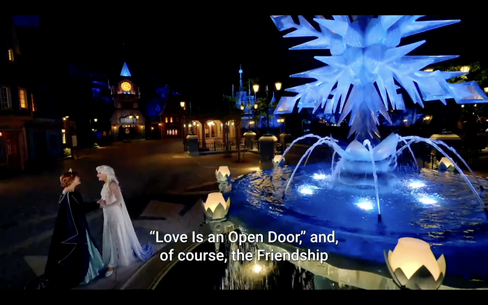 …and the friendship fountain that commemorates the love between Anna and Elsa.
