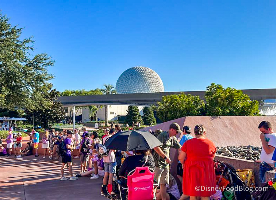 One of our reporters rushed straight to the pavilion when the park opened and found herself second in line outside of the pavilion. Another reporter headed inside (NOT in line) and found that resort guests who had Early Entry had already lined up inside (since they were able to enter the park 30 minutes early). This was around 9AM, right after the park opened.