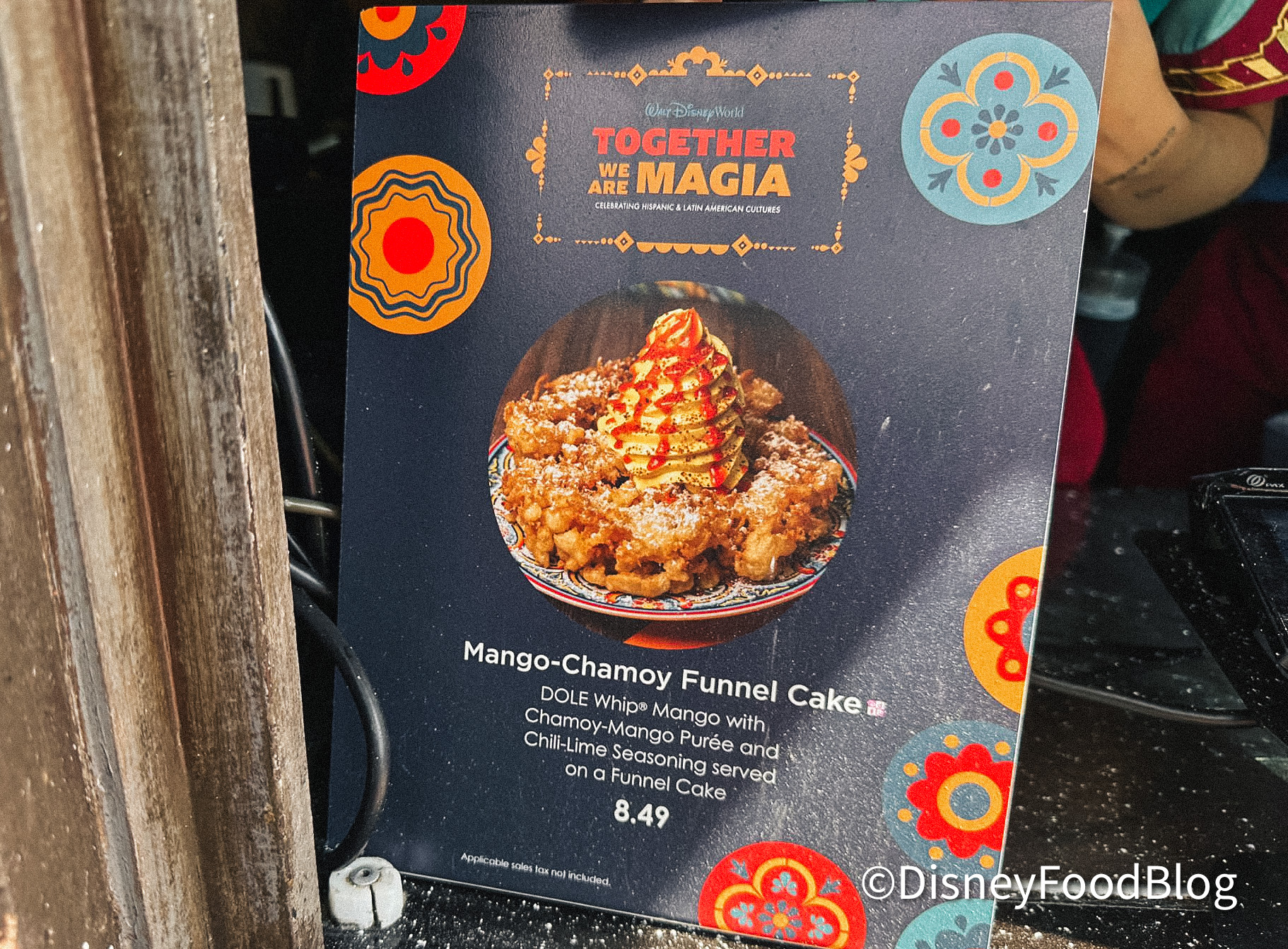 The Mango-Chamoy Funnel Cake is available for $8.49 at Epic Eats throughout Hispanic Heritage Month. This treat combines the beloved Mango DOLE Whip with chamoy-mango purée and chili-lime seasoning served on a funnel cake.