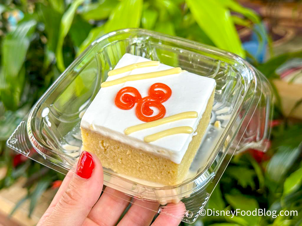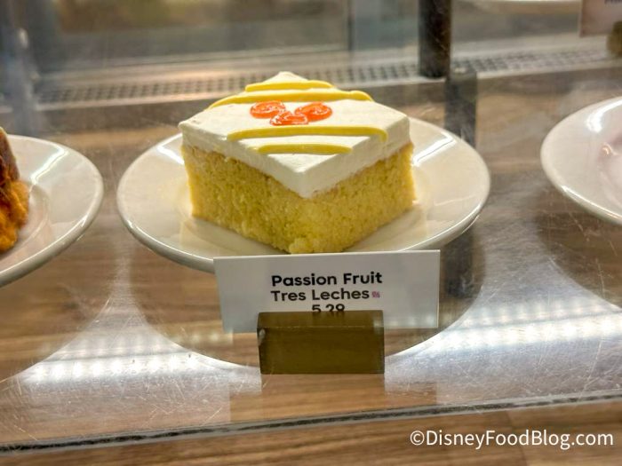 Over at Sassagoula Floatworks Food Factory, you can grab the new Passion Fruit Tres Leches for $5.29. This is passion fruit tres leches with a guava Mickey decoration, and contains whole milk, sweetened condensed, and evaporated milk inside (so those that are lactose-intolerant — beware).