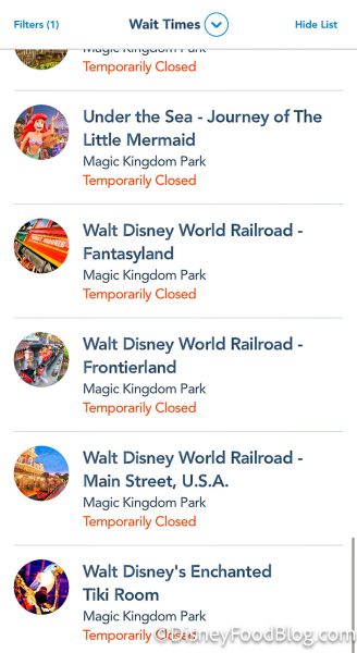 We’ll make sure to keep you updated as we learn more details about these closures — as of 10:15AM, all the Adventureland, Liberty Square, and Frontierland attractions are still listed as closed.