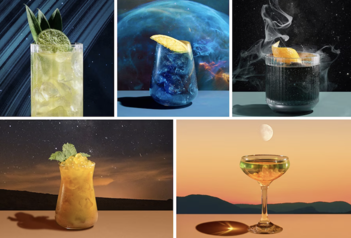 - Starship Lemonade: Butterfly pea flower, lemonade, and Sprite served with a glow cube (Non-alcoholic)
