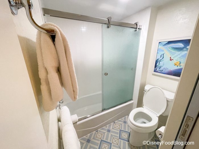 We are in LOVE with the art above the toilet. It’s Sebastian and Flounder!