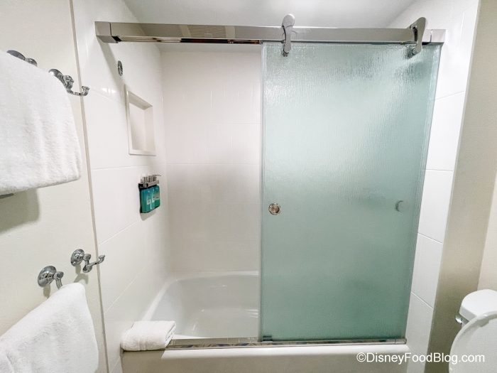 Inside the shower, you’ll find more of those H20 amenities in refillable shampoo, conditioner, and body wash bottles.