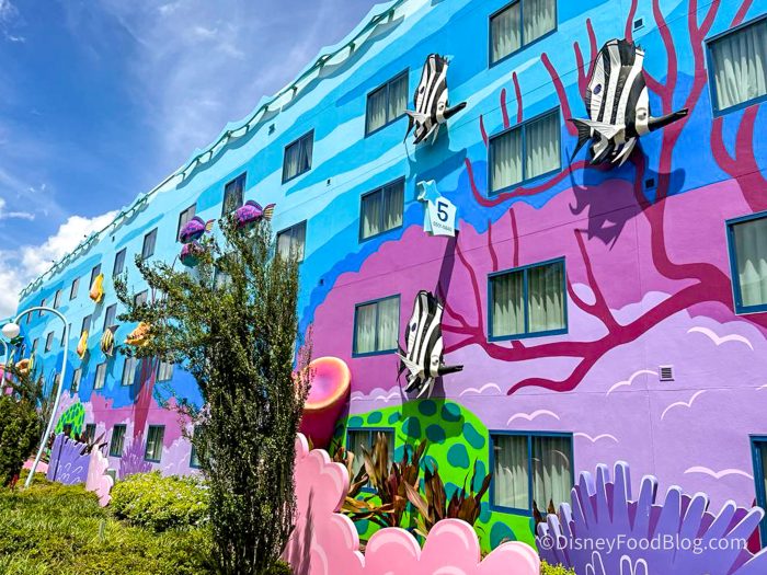 Okay, so a little background. Art of Animation Resort is themed to celebrate, well…animation — just like its name says. It has some wonderfully themed sections themed to Cars, Finding Nemo, and The Little Mermaid. And in true Disney fashion, the theming is ON POINT. Like we said — this resort is so much fun!