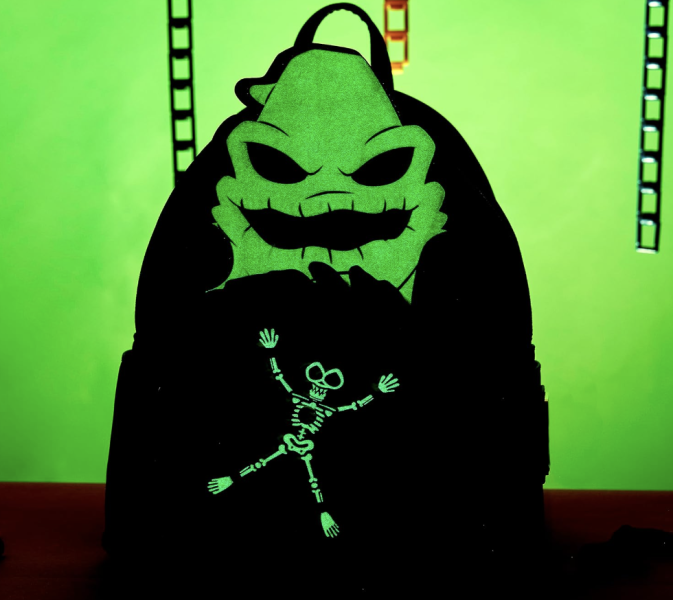 First up is this Oogie Boogie Loungefly Mini-backpack, which features the villain from Tim Burton’s The Nightmare Before Christmas, along with Jack and Sally on the front. And the best part? It glows in the dark!