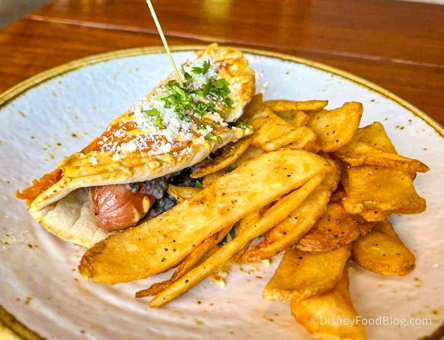 We hopped on over to Disney’s Grand Californian Hotel to stop by GCH Craftsman Grill for one reason and one reason only: The Gordita Dog. What exactly is a gordita dog? We’re so glad you asked.