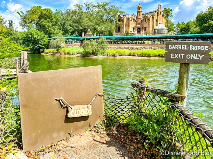 Over on Tom Sawyer Island, the Barrel Bridge is currently missing.