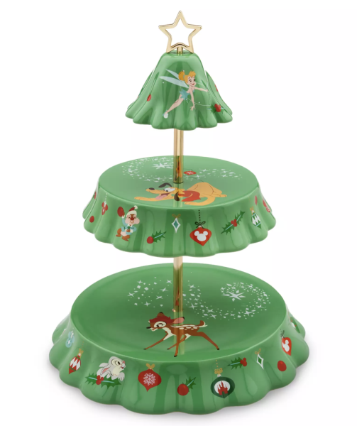 This Mickey Mouse and Friends Holiday Tiered Tray is a great way to spread some Disney cheer while you’re hosting this holiday season. This stoneware piece includes two trays plus a top section with a star and Tinker Bell imagery.