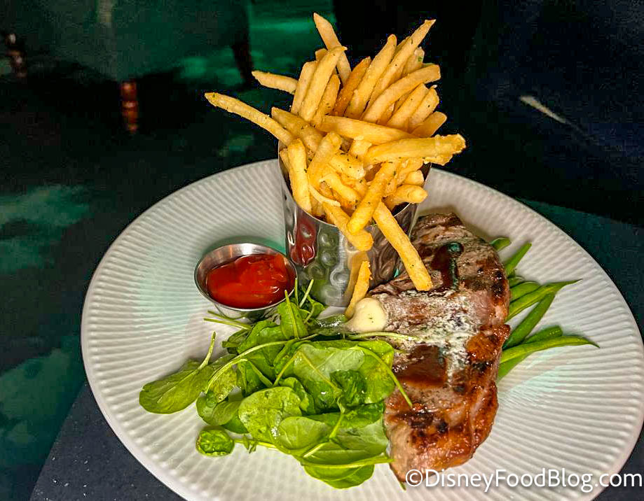 The green beans served on the side of the steak are fresh and have a nice crunch — not soggy at all. The steak itself was nice and did the trick for a steak craving, but it’s not quite as good as others we’ve had on property.