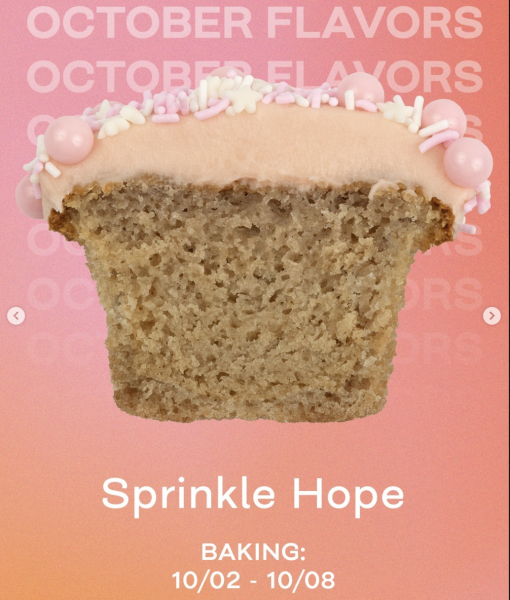 Sprinkle Hope is a strawberry cake with sweet strawberry frosting decorated with pink and white sprinkles to support Breast Cancer Awareness Month. It’s available now through October 8th.