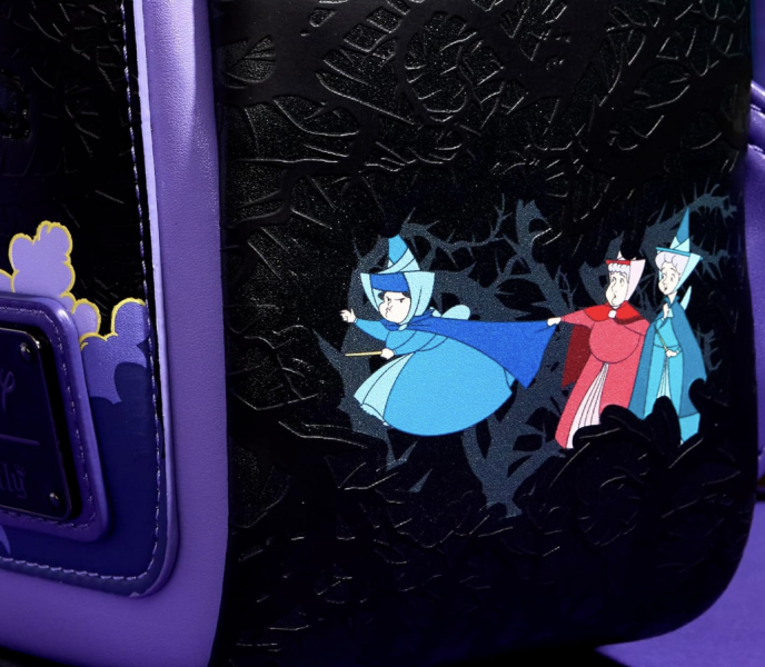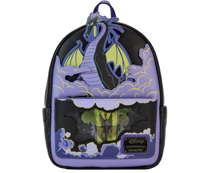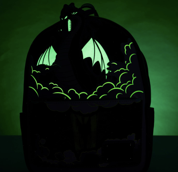 The Maleficent Dragon Loungefly Backpack features the frightening villain from Sleeping Beauty. You’ll spot other characters from the film on this bag, like the three fairies.