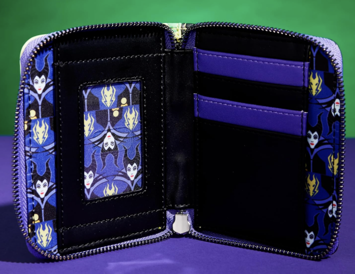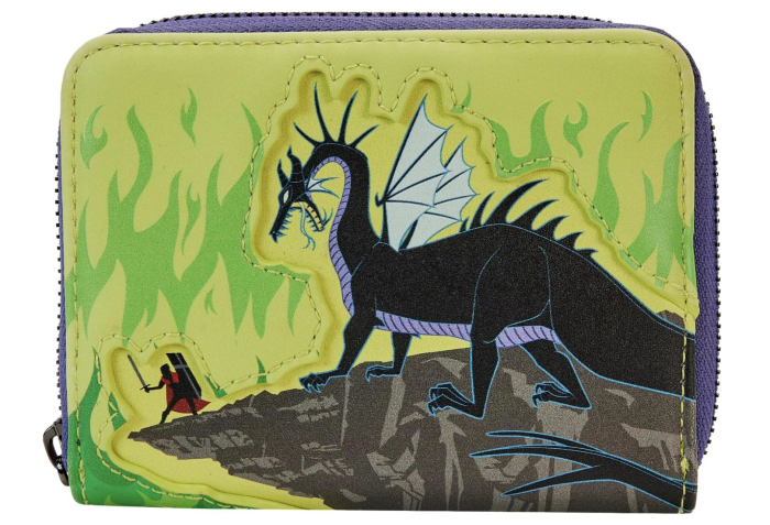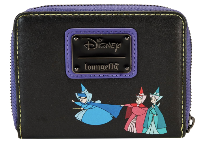 Don’t forget the matching Maleficent Dragon Loungefly Wallet! On one side is Maleficent battling Prince Phillip, and the other side has the three fairies.
