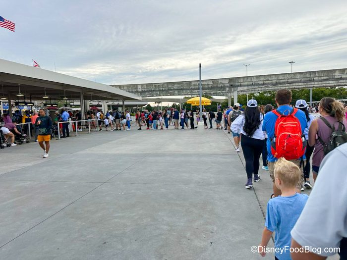 When we parked at the Transportation and Ticket Center this morning (which is where you park when you’re headed to Magic Kingdom), we noticed that there were a LOT of people there. Let’s just say the line for the Monorail to Magic Kingdom was LONG.