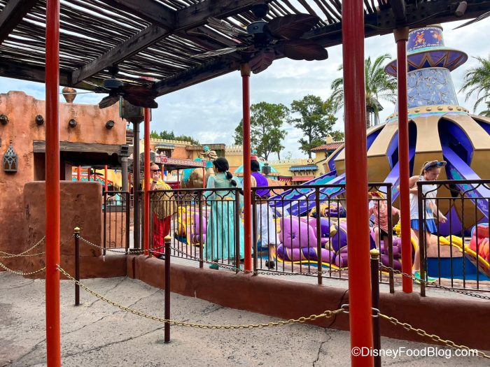 That’s right — Aladdin and Jasmine join the first family to ride The Magic Carpets of Aladdin and take their own ride on a flying carpet, just like in the movie. Cue “A Whole New World” right now! It’s so sweet and such a magical thing to experience.