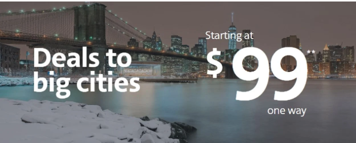 They have also started offering deals to big cities for as low as $99 on one-way tickets. If you want to travel to places like Phoenix, Los Angeles, Denver, or Orlando (Disney World) then this deal could be for you! This deal is offered on all days of the week, unlike the weekday deal.