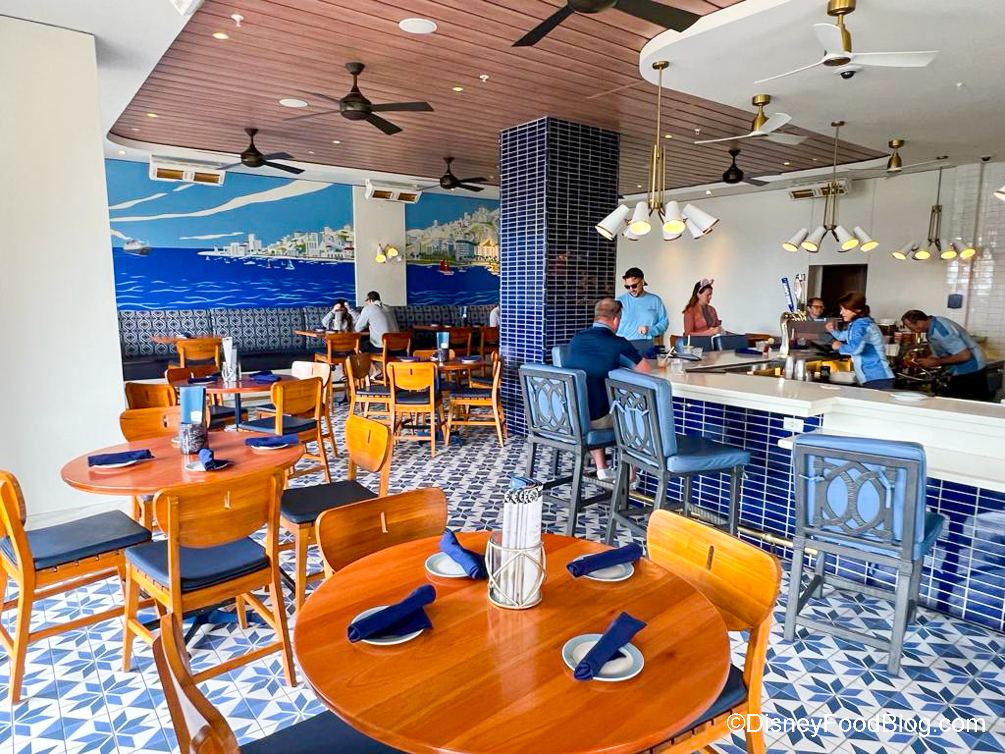 Bar Riva is located right next to the pool at Disney’s Riviera Resort and has indoor seating. This is a European/Mediterranean bar and eatery that provides light nourishment while you lounge.