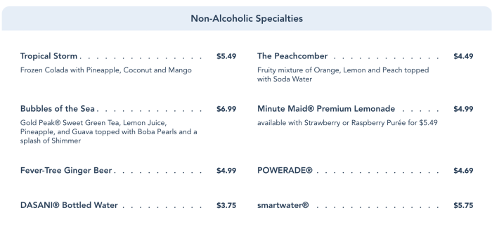 For drinks, there’s a wide assortment of specialty non-alcoholic beverages...