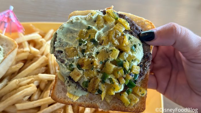 The bread for the bun reminded me of a Sister Schubert’s roll you can get in the grocery store and there are two interesting layers of flavor above and below the meat patty — the bottom is crunchier while the pineapple and jalapeno cream is on the top, and gives more of a juicier but spicy bite that bursts as the pineapple tidbits are popped.