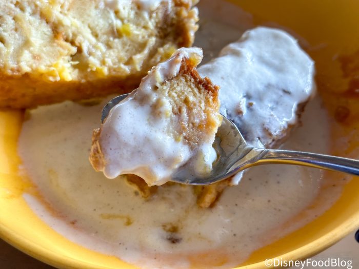 As if I didn’t have enough food already it was time for dessert, so we ordered quite possibly the best dessert in all of Walt Disney World the Pineapple- Coconut Bread Pudding.
