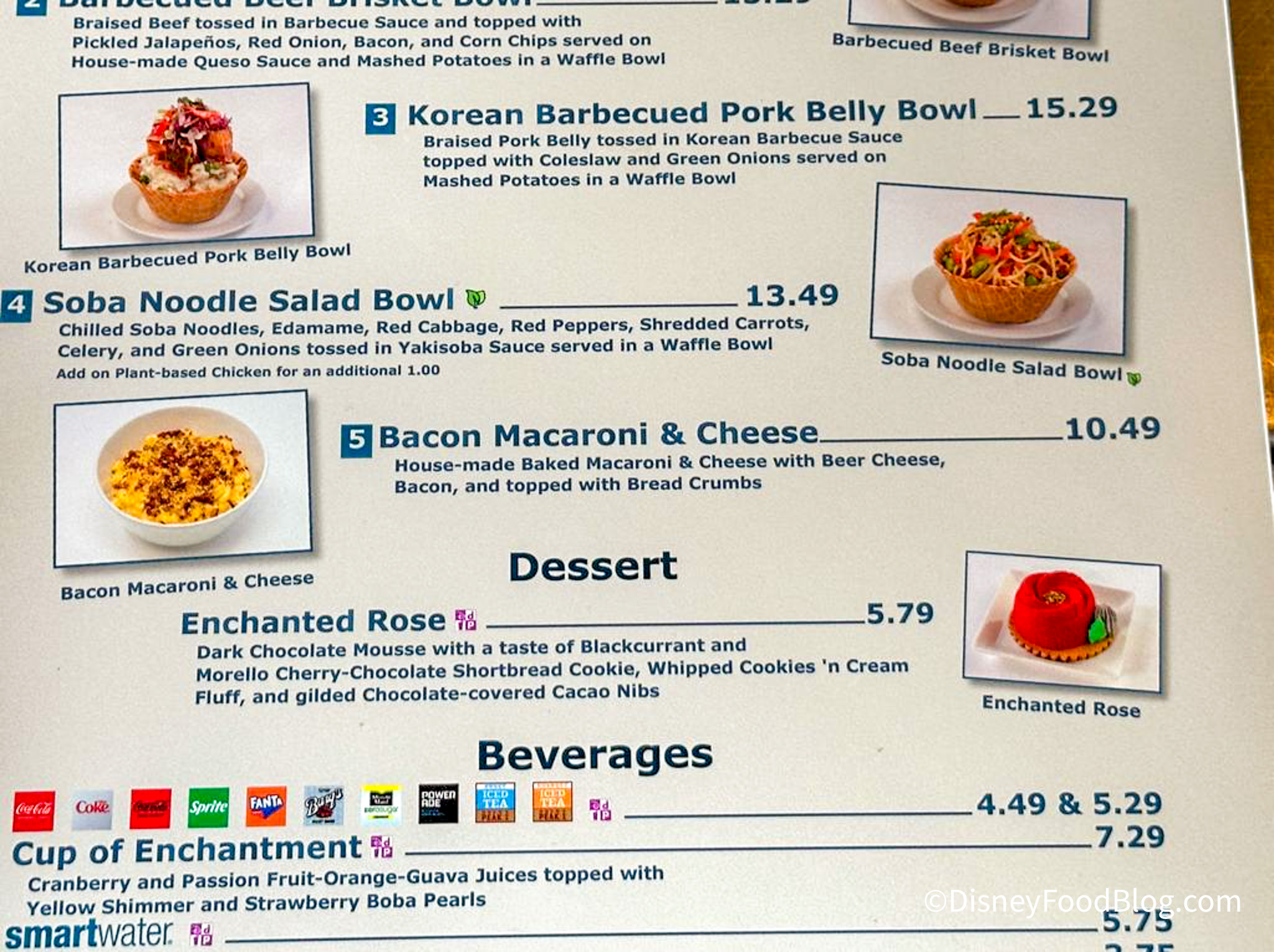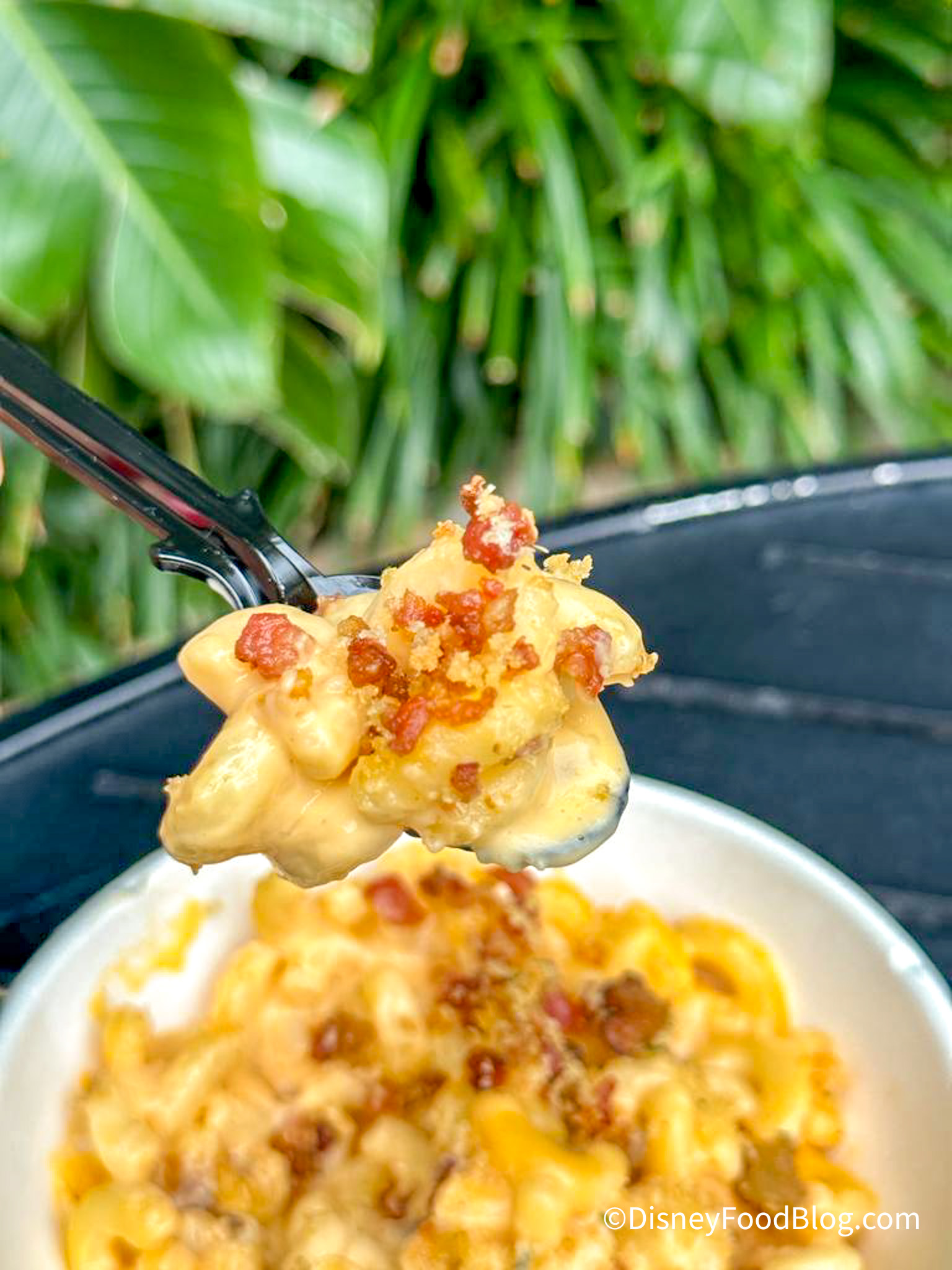 Fairfax Fare is a quick-service restaurant along Sunset Boulevard on your way to the Twilight Zone Tower of Terror. This spot is known for its waffle bowls filled with delicious eats and toppings. On the day we stopped by, we got the new Bacon Macaroni & Cheese!
