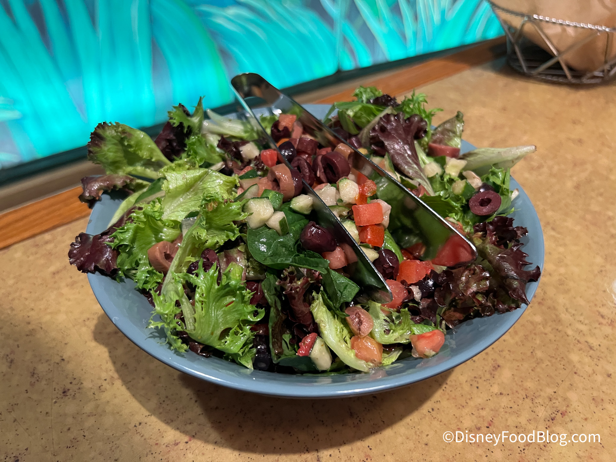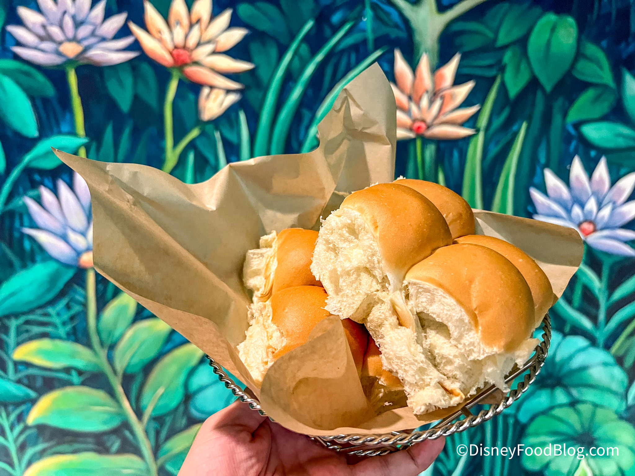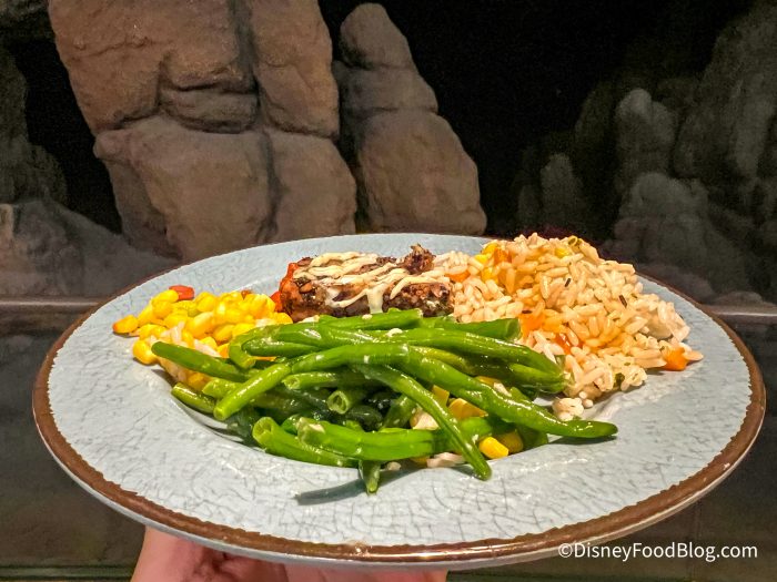 This family-style meal is sure to fill you up. If you like garlic and butter, we’re sure you will enjoy this meal. It incorporates many other flavors, but those are the stand-outs for us. You might also enjoy this dining location if you like the Living with the Land ride or character meals. You can get lots of fun interactions here!