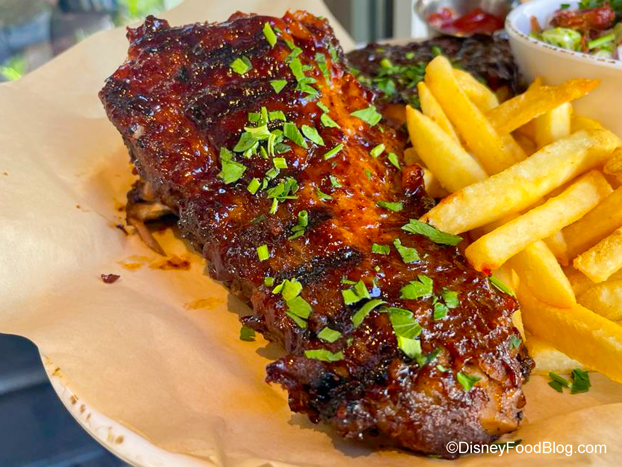 But we’re not done yet. We also ordered the Baby Back Ribs for $34. This is a full rack of ribs that is slow-smoked for 5 hours and then basted in a house-made sweet and spicy barbecue sauce. It’s served with fries and a broccoli and bacon salad.