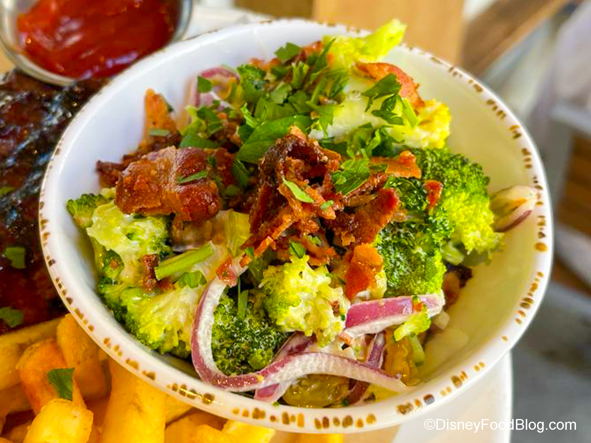 The broccoli salad was a great accompaniment. The broccoli wasn’t overcooked, so it still retained some crunch. The mayo in it is light and we liked the saltiness that the bacon added.
