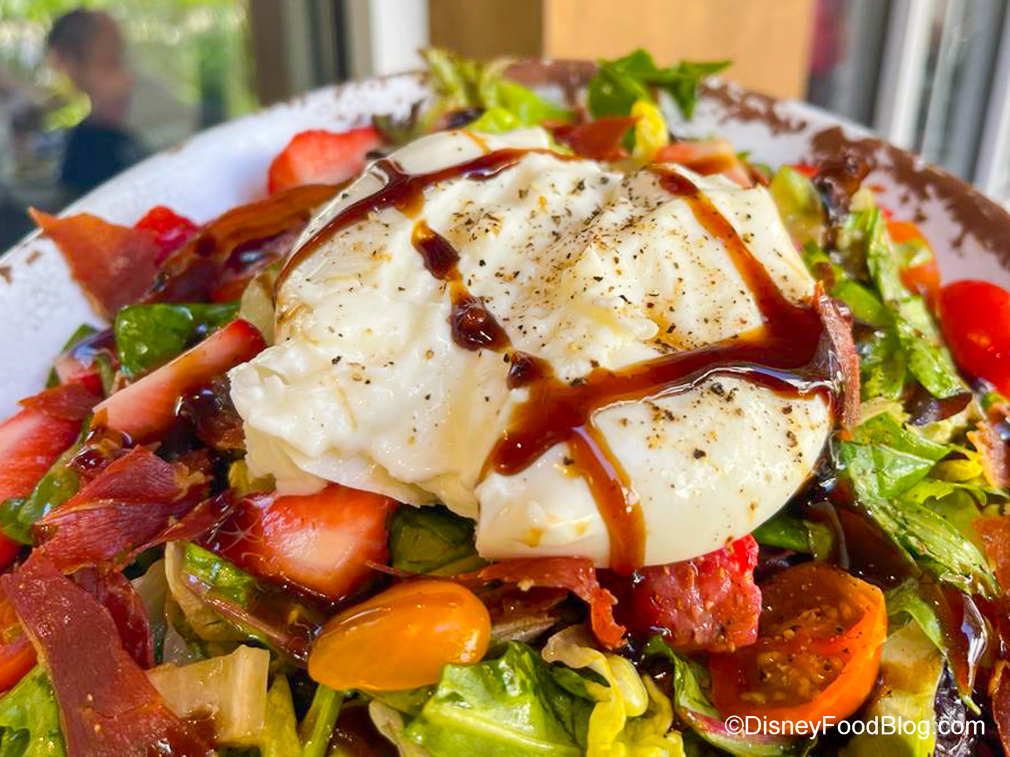 We also ordered the Strawberry Fields Salad for $21, made with crispy prosciutto and fresh burrata cheese served on top of chopped romaine, mixed greens, strawberries, and red onion tossed in house-made maple balsamic dressing and drizzled with balsamic reduction.