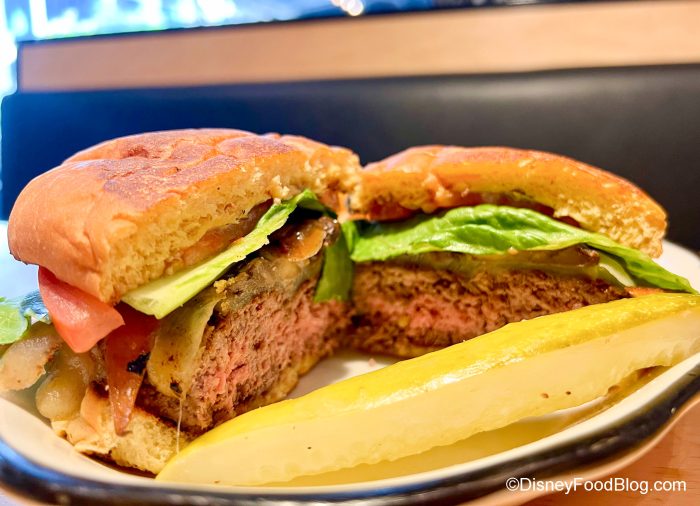 This is a rustic burger, but the burger itself was a little drier than we would’ve liked, although the tomato helps a little with that. The mushrooms, though, are SO good, and have a ton of flavor, especially mixed with the Swiss cheese and onions.