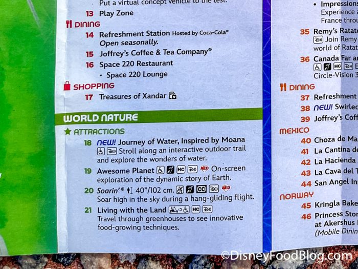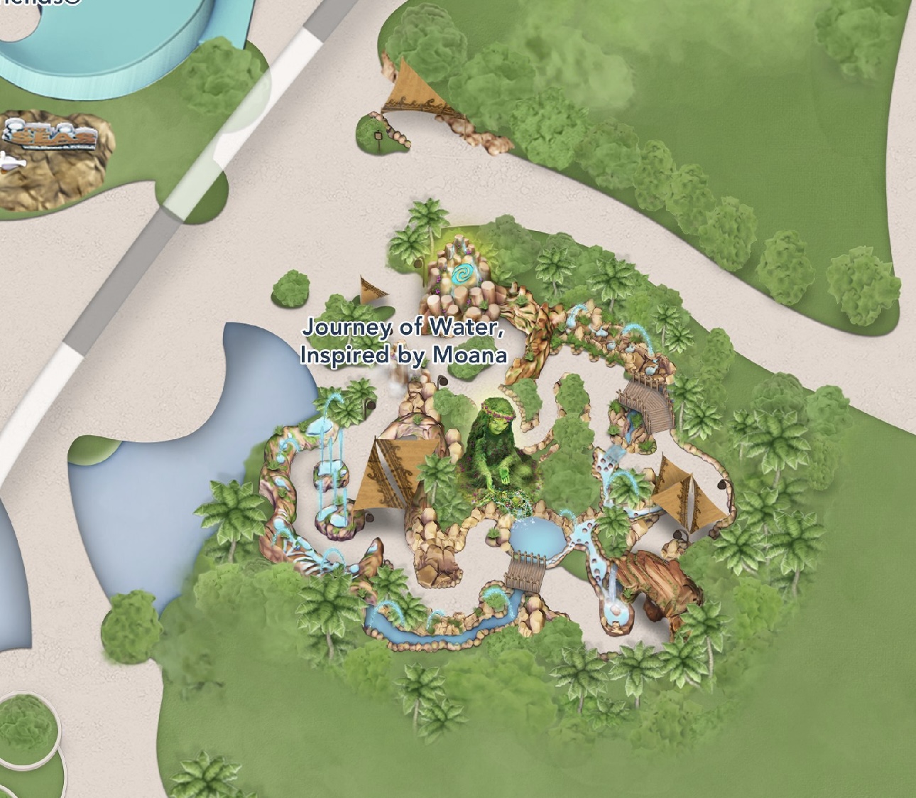 There’s a new illustration for the Journey of Water, too, and across from the attraction, you’ll find a Mickey icon to denote the meet-and-greet location for Moana.