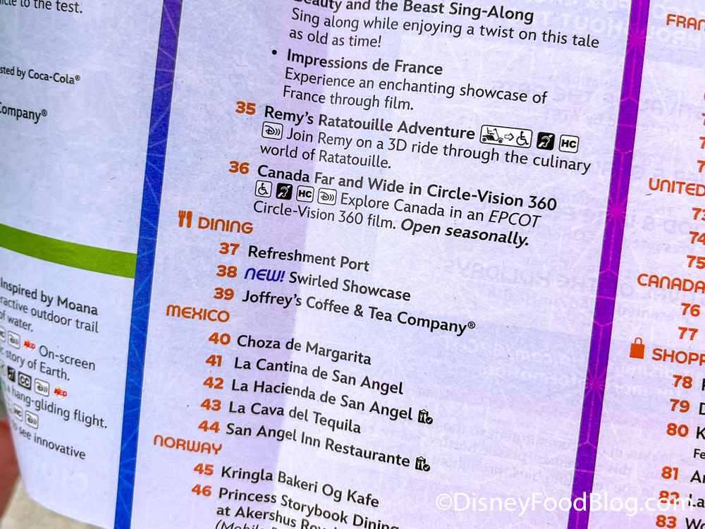 We also noticed that Swirled Showcase, one of the 100th Anniversary booths added for the EPCOT Food and Wine Festival, is listed as a dining location!